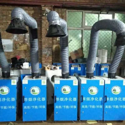 烟尘通过焊烟净化器产生的负压由吸气罩吸入烟尘,经柔性吸气臂进入腔体,流速变慢使大颗粒直径的粉尘掉落下来,含微细粉尘的气流进入净化室内,粉尘的过滤分离在净化室內通过滤筒的分离作用完成。烟尘则被滤芯阻拦在其表面上,净化后的空气经风机排出,当被阻拦的烟尘在滤芯表面不断沉积时,定时开启脉冲清灰系统,手动清灰式需将滤筒取出手工清理,静电式需定期清洗电极板。