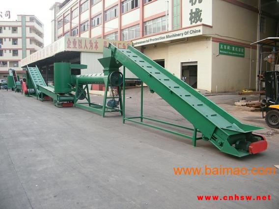 塑料瓶片设备主要工艺流程介绍:首先将市面上所有废弃的PET瓶回收回来堆积,首**行步的去标签工作,国内**大部分瓶身都是套标标签形式(除油瓶贴标外),利用脱标机可以**的去标瓶身的标签,去完标后,接下来是进行挑色分选,这一步也可以在未脱标前进行颜色分选,但效率低下,建议在脱标后在平台挑选平台上进行分选,其中将透明瓶与绿色瓶分开,不能混在一起,蓝色瓶可以与透明瓶混一起,但这样做出来只能做三维级化纤使用。分选完主要的透明颜色后,就是进行破碎过程,将整瓶破碎至Ø22-Ø35大小(也可以一次破碎成Ø12-Ø16规格,但粉沫损耗大),破碎完后再进行盖子(PP塑料)与瓶片的分离,使用水槽可以有效的将瓶盖与瓶片分离开来,瓶盖是浮水塑料,瓶片是沉水塑料,分离掉瓶盖后,再抽入高湿蒸煮锅内进行蒸煮,放入一定比例的烧碱或清洗剂,可以有效的**瓶片上的污物、油污等杂渍,经过高温煮过的瓶片下一道工序是摩擦清洗,摩擦清洗是去除粘在瓶片表面的附着物,接下来就是经过清洗漂洗阶段,漂除瓶片上的烧碱及其它杂物,至此,瓶片已清洗干净,然后就是进行脱水烘干环节,接下来可以直接打包封装出售。